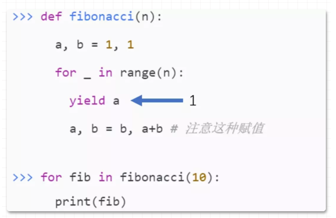 但是,又与 return 不同,yield 后下一次执行会进入到yield 的下一句代码,而不像 return 下一次执行还是从函数体的第一句开始执行。