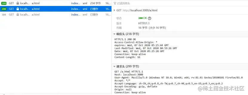 可以看到在第二次访问中,expires设置的时间大于Date,说明缓存还没有过期,所以直接访问了缓存中的资源