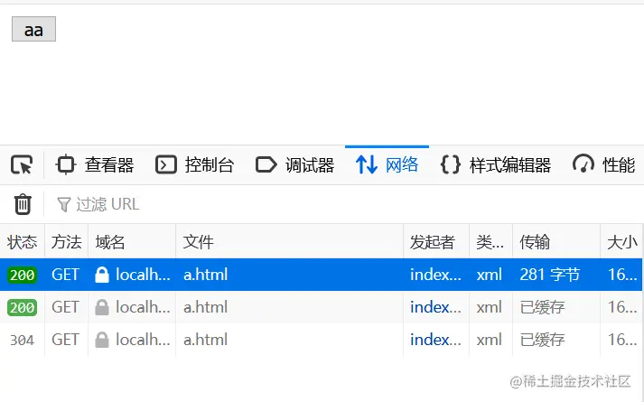 xhr.open('get', 'http://localhost:3000/a.html')