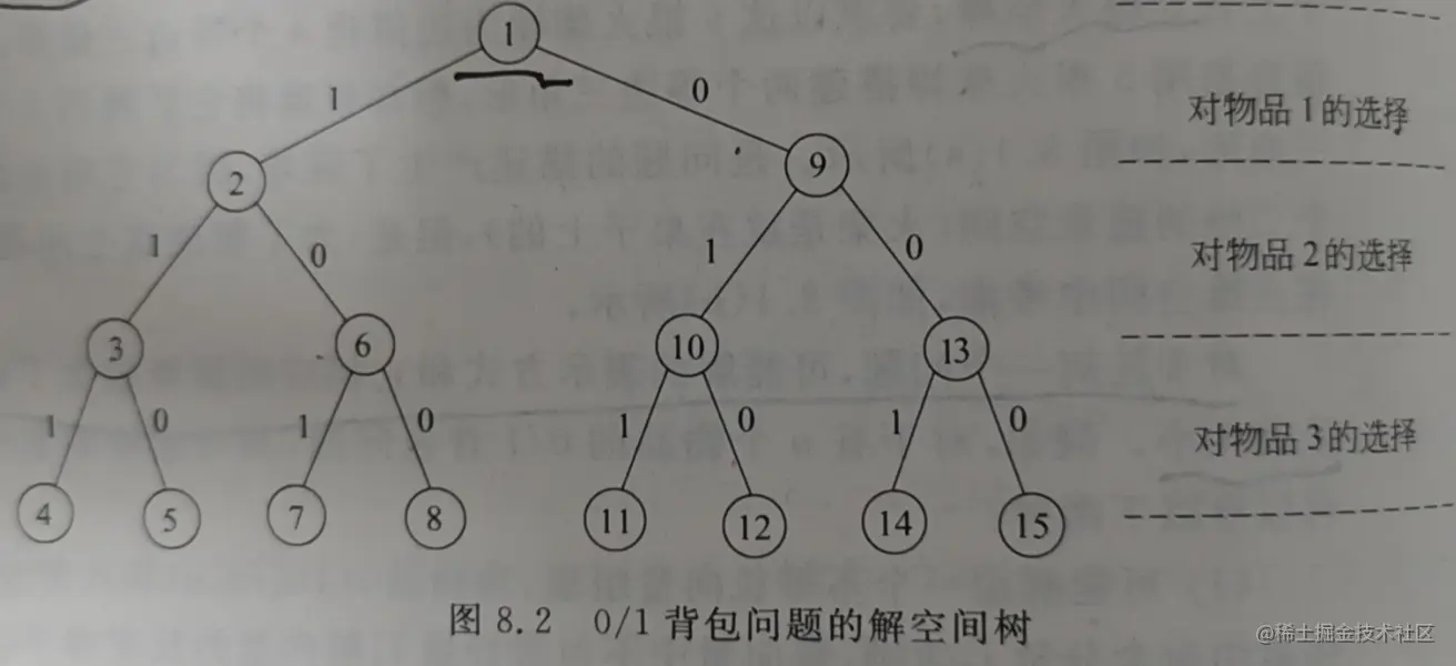 问题的解空间一般用解空间树的方式组织,因为解空间树能将解空间形象化。如0/1背包问题,