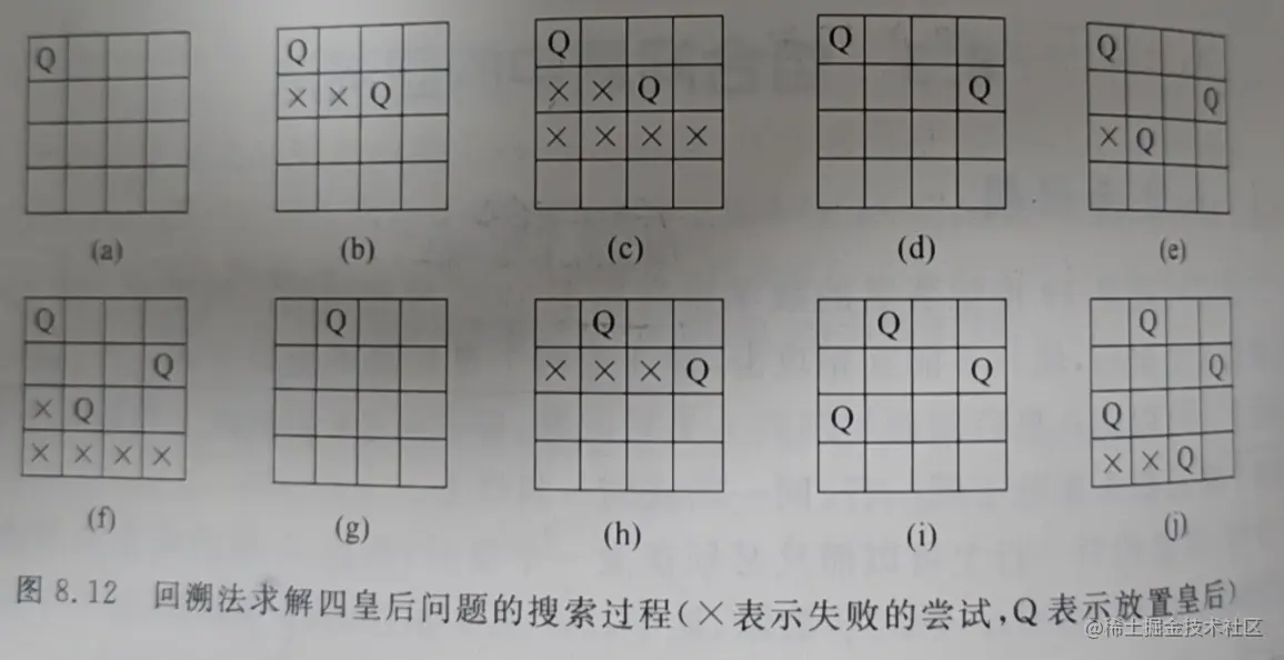 以使用回溯法计算四皇后问题举例。