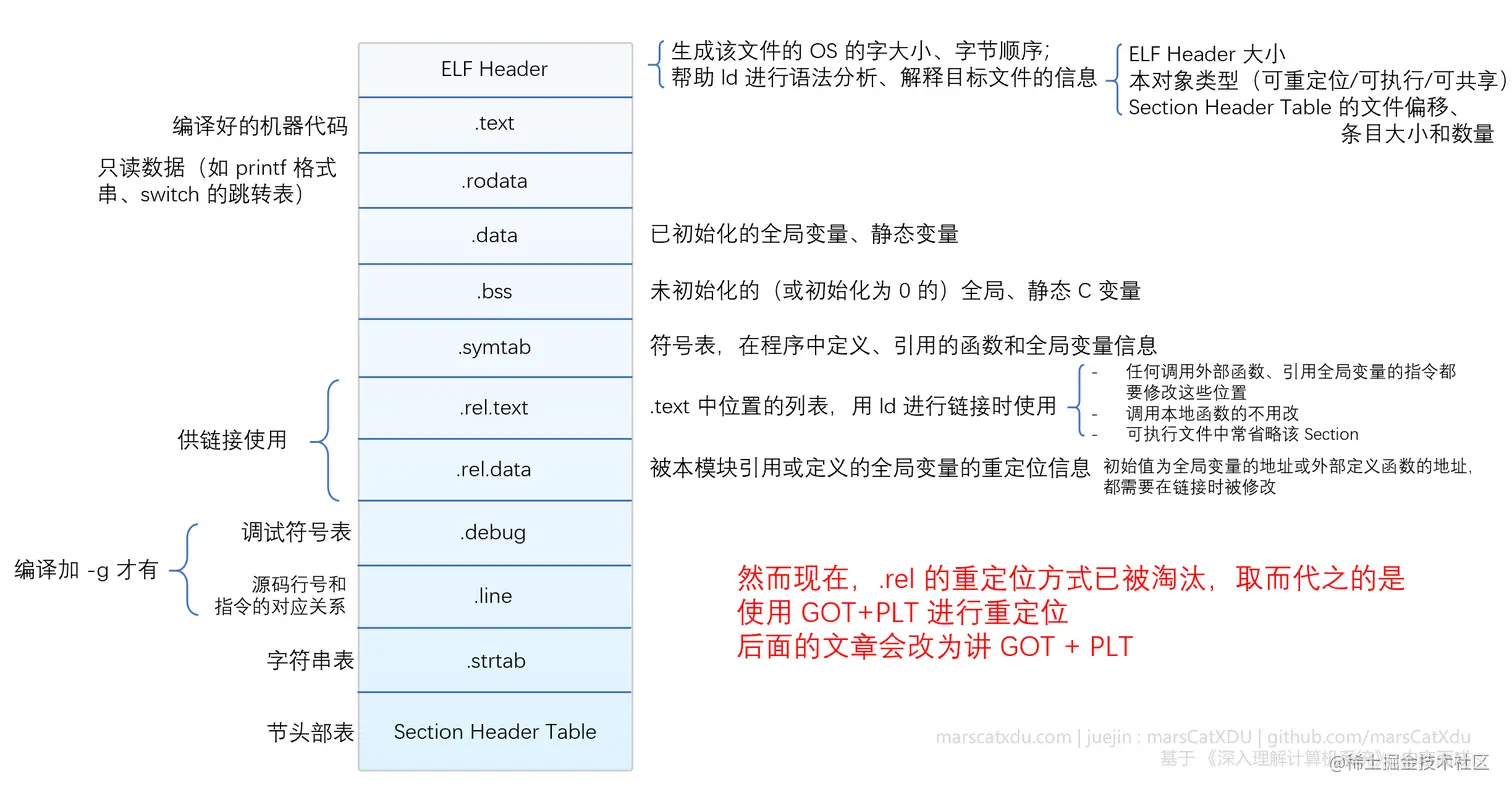 目标文件由不同的代码和数据节(Section)组成,每个 Section 是一个连续的字节序列。