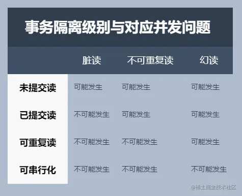 读未提交(READ UNCOMMITTED):读未提交是最低的隔离级别,不同事务之间可以读取未提交的数据,因此可能产生脏读、不可重复读和幻读。