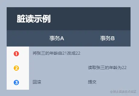 脏读是指事务A未提交的数据被事务B读取,事务A回滚,事务B读到的数据是脏数据。