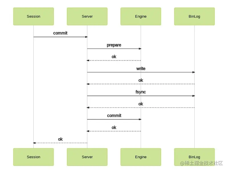 commit阶段:innodb释放锁,释放回滚段,设置redo log提交状态,binlog持久化到磁盘,然后存储引擎层提交。