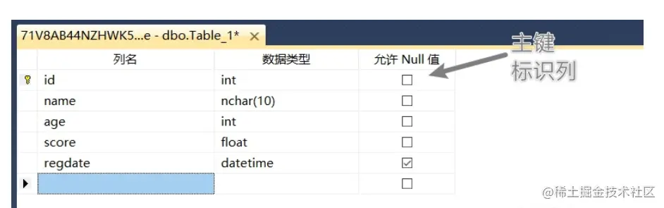 新建表的结构