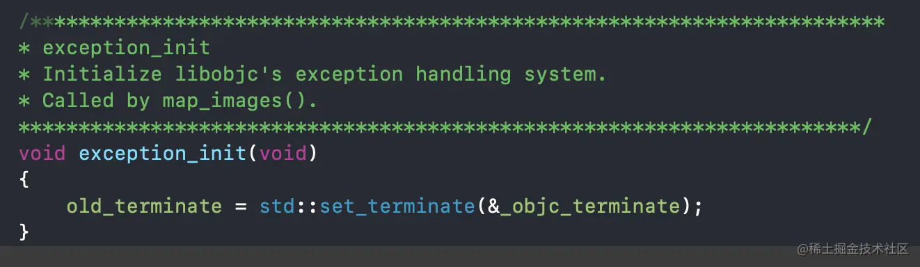 是初始化libobjc的异常处理系统,注册异常处理的回调,从而监控异常的处理,源码如下