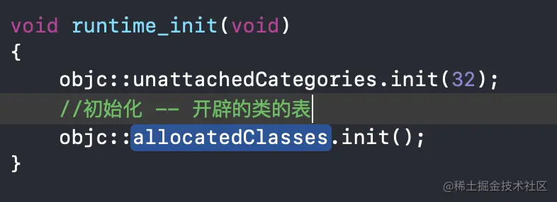 主要是运行时的初始化,主要分为两部分:分类初始化、类的表初始化(后续会详细讲解对应的函数)