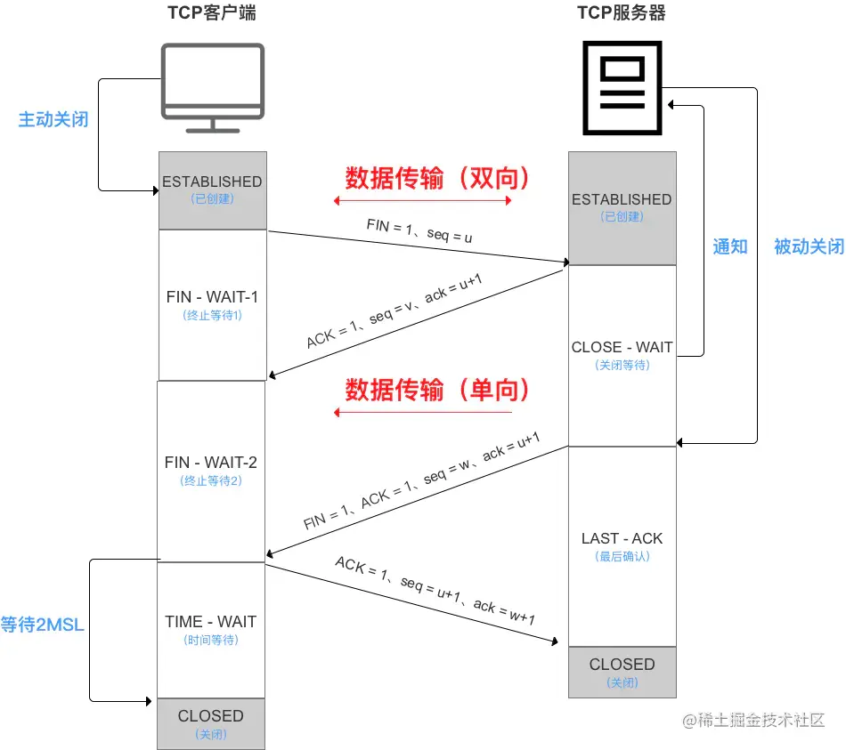 四次挥手:断开连接