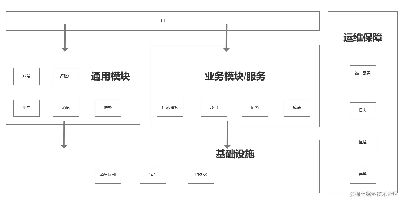 基础架构、前端架构、后端架构是从职责上的分类。