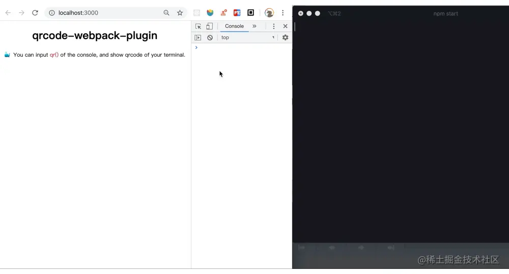 一个通过浏览器控制台调用命令行打印二维码的webpack插件