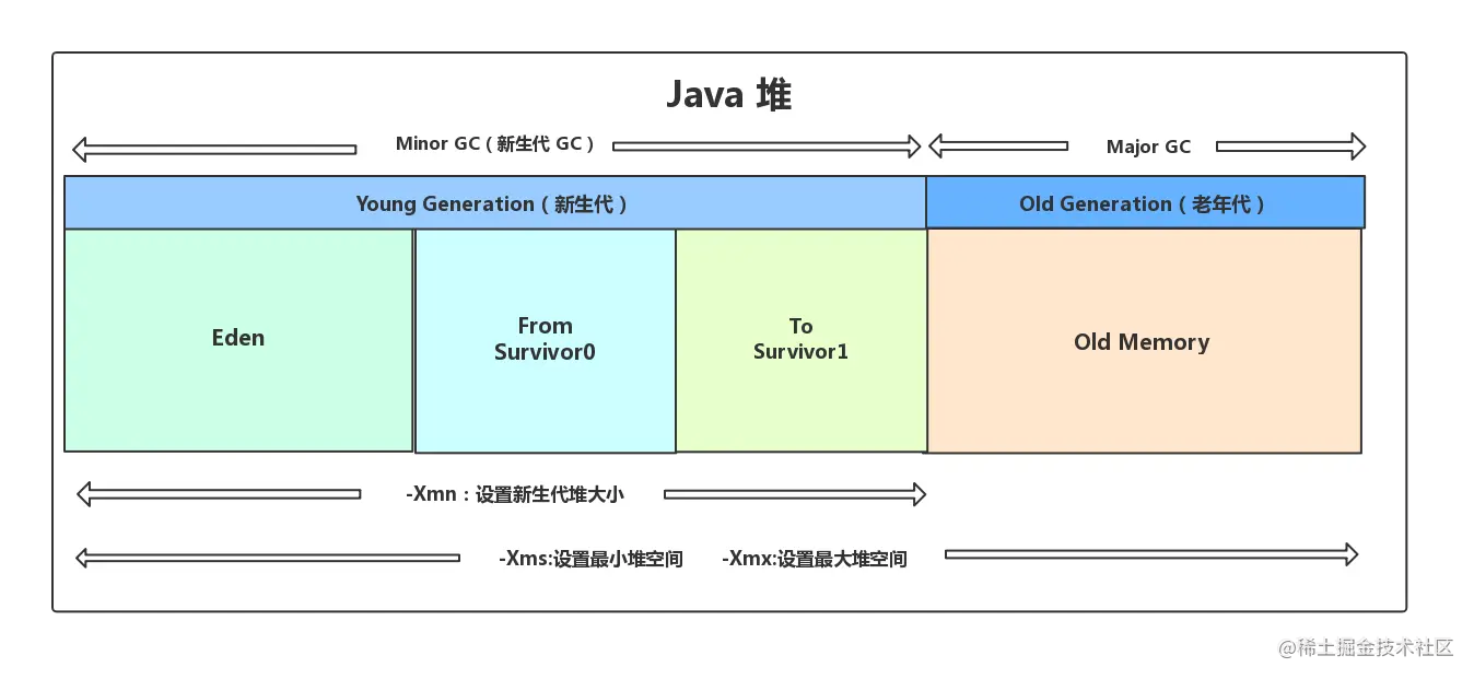 除此之外,可以通过 -Xmn 虚拟机参数调大新生代的大小,让对象尽量在新生代被回收掉,不进入老年代。