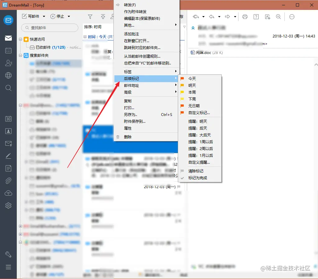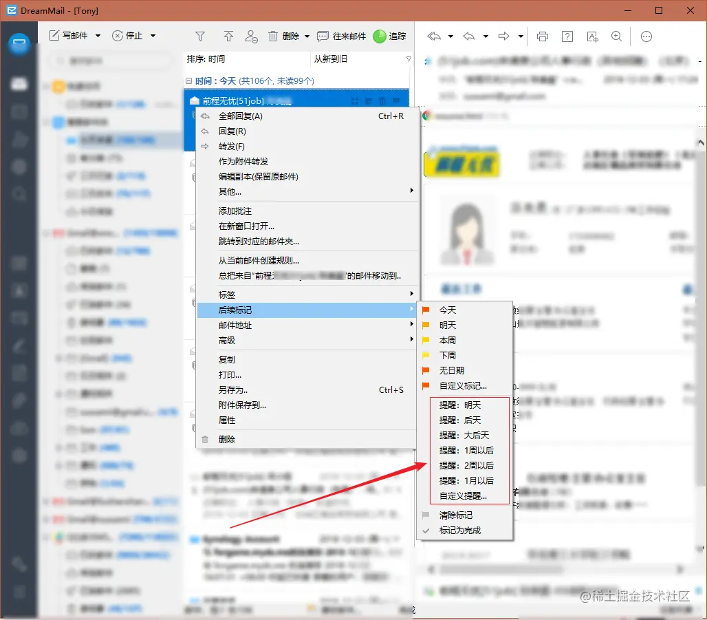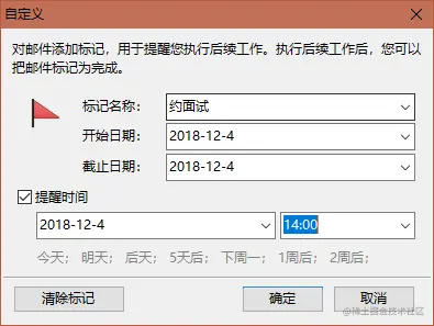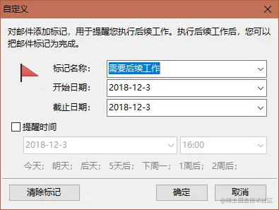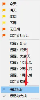 邮件添加标记,用于提醒您执行后续工作; 执行后续工作后,您可把邮件标记为完成