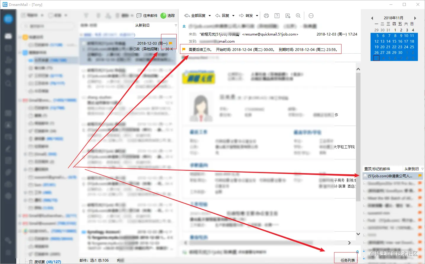 邮件列表/邮件正文以及任务列表都有相应变化。