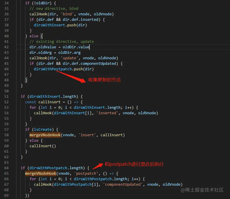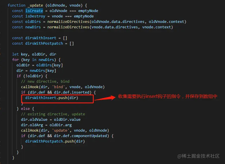 - 如果只在新节点中包含的指令,并且有inserted,则加入dirsWithInsert队列;
