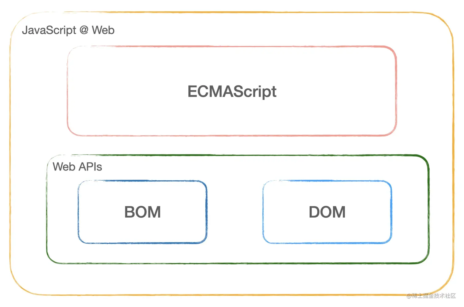而JavaScript实现了ECMAScript的语言标准,并且在这个基础之上做了扩展,使得我们可以在浏览器中环境中操作DOM和BOM以及在node环境中读写文件操作等。