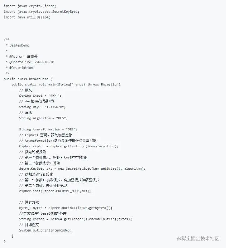 System.out.println("加密:" + encryptDES);