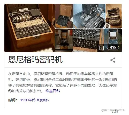 恩尼格玛机是二战时期纳粹德国使用的加密机器,后被英国破译,参与破译的人员有被称为计算机科学之父、人工智能之父的图灵。