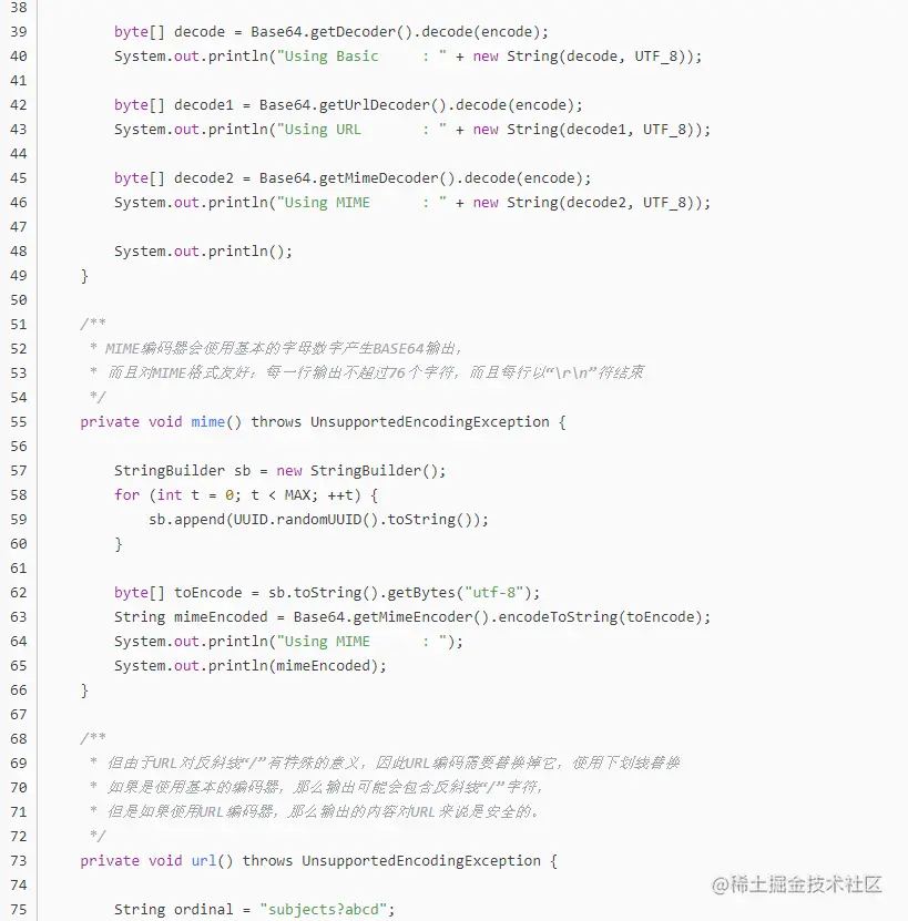 Base64工具类提供了一套静态方法获取下面三种BASE64编解码器: