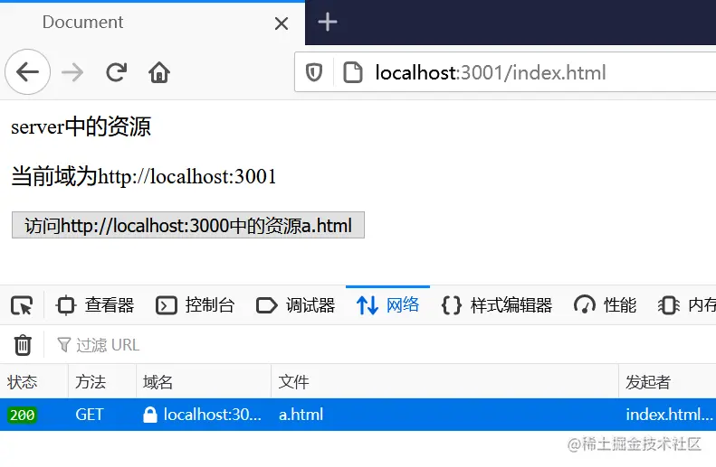 - 在index.html中点击按钮触发ajax请求去访问a.html,该请求跨域