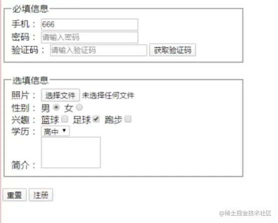 跳<input type="checkbox" name:"hobbies">