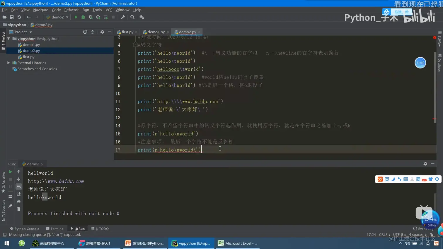 print('老师说:'大家好'') 记住此处细节 'XXXXX'