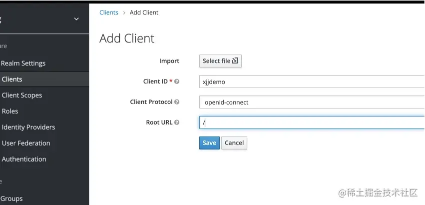 我们这里创建了一个叫做xjjdemo的client,稍后会在token接口中带它进去。