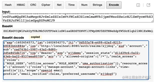 curl -XPOST -d 'access_token={上面的token}' http://localhost:8080/auth/realms/xjjdog/protocol/openid-connect/userinfo