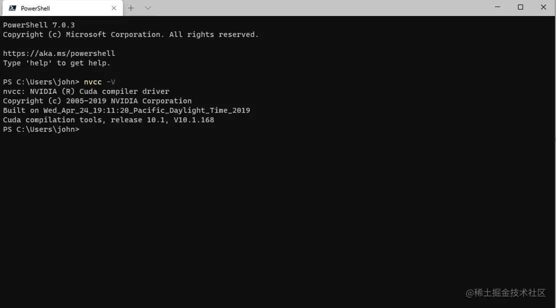 安装完成之后,会自动添加了几个环境变量到系统中,打开终端里面输入 nvcc -V 验证安装结果。