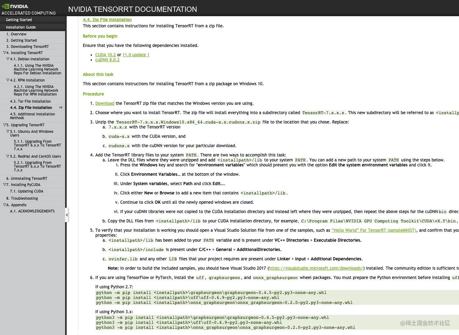 用于可缩短用某些模型进行推断的延迟时间并提高吞吐量,可选择 Zip 方式安装,这里可选安装。
