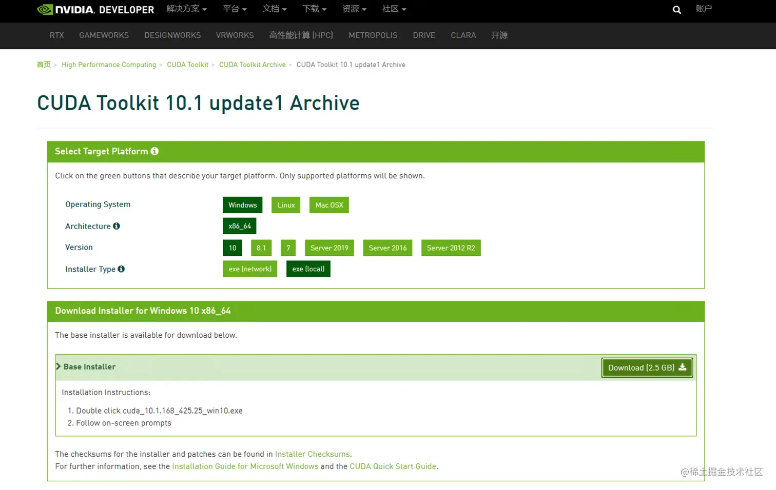 CUDA 工具包提供了用于创建高性能GPU加速应用程序的开发环境。TensorFlow(TensorFlow 2.1.0 及更高版本)支持 CUDA® 10.1 的 CUDA® Toolkit 。