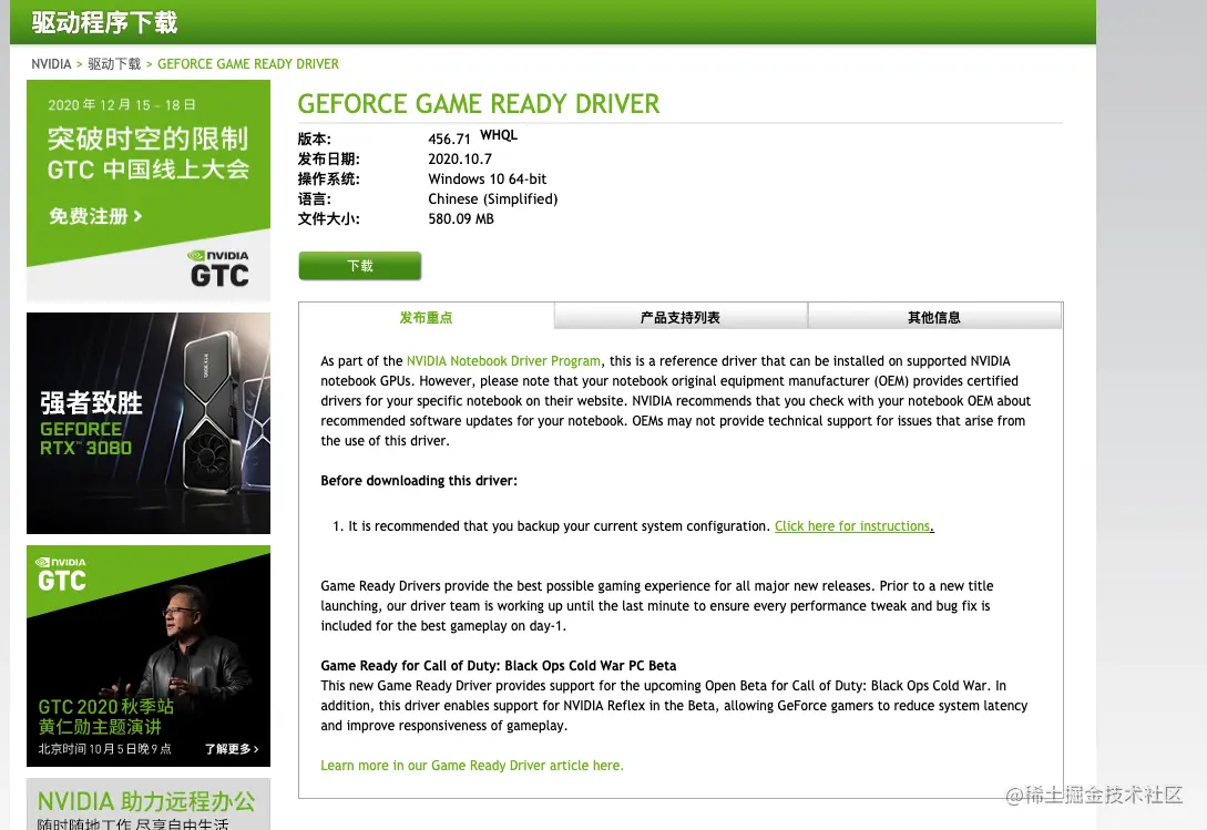 版本号为 456.71,满足要求,然后下载下来后安装驱动。