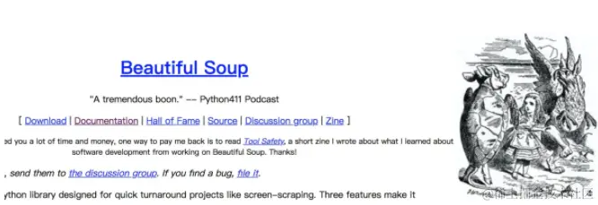 Beautiful Soup 是一个可以从HTML或XML文件中提取数据的Python库.它能够通过你喜欢的转换器实现惯用的文档导航,查找,修改文档的方式.Beautiful Soup会帮你节省数小时甚至数天的工作时间。