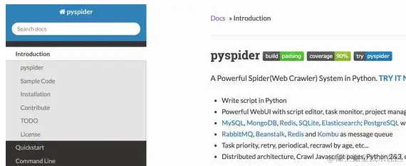 pyspider 是一个用python实现的功能强大的网络爬虫系统,能在浏览器界面上进行脚本的编写,功能的调度和爬取结果的实时查看,后端使用常用的数据库进行爬取结果的存储,还能定时设置任务与任务优先级等。