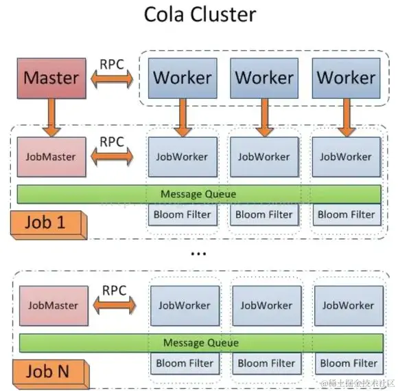 Cola是一个分布式的爬虫框架,对于用户来说,只需编写几个特定的函数,而无需关注分布式运行的细节。任务会自动分配到多台机器上,整个过程对用户是透明的。