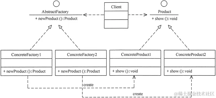 - 创建抽象工厂类,定义具体工厂的公共接口;