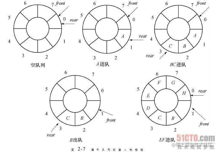 队列(queue)是一种操作受限的线性表,只允许在表的一端进行插入操作(入队enqueue)而在另一端进行删除(出队dequeue)的线性表。进行插入操作的端称为队尾,进行删除操作的一端称为队头。队列中没有数据元素时称为空队列。