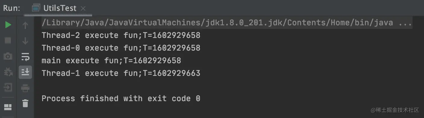 System.out.println(Thread.currentThread().getName() + " execute fun;T=" + System.currentTimeMillis() / 1000);