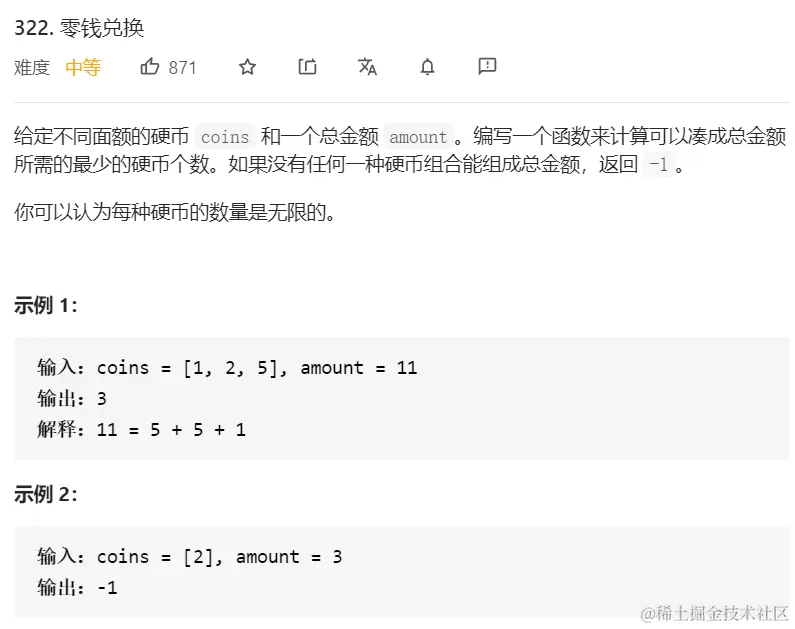 //dp[amount]===amount说明没有没有任何一种硬币组合能组成总金额,则返回1