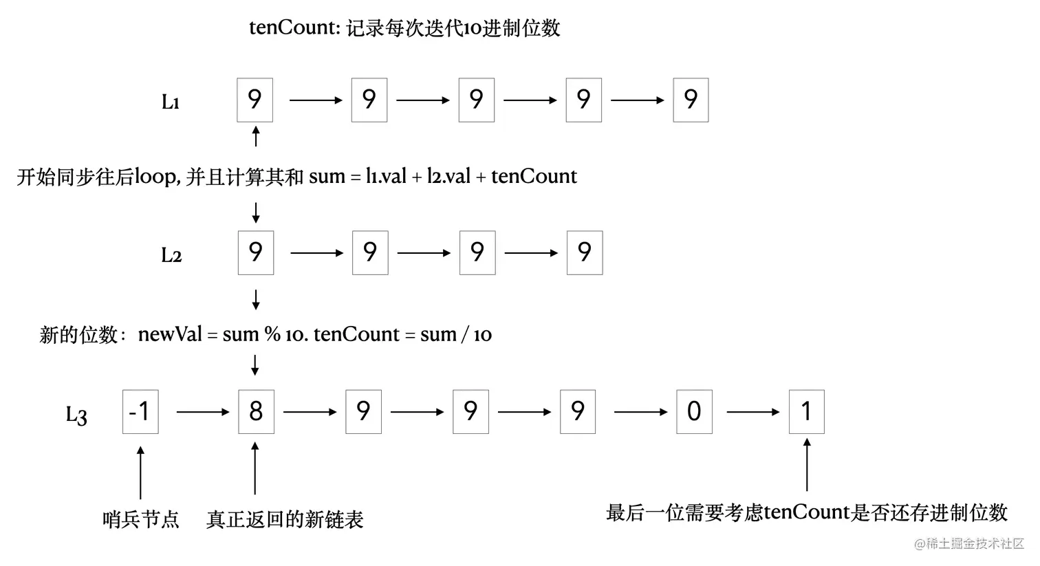 cur.next = new ListNode(tenCount)