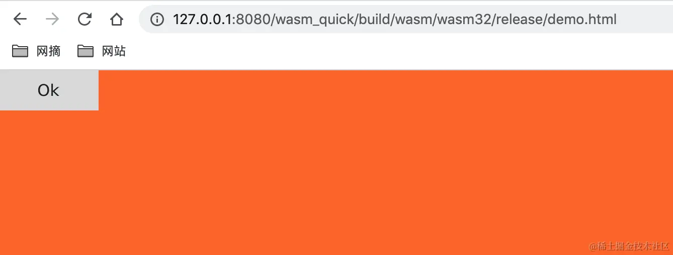 完成编译后,xmake 会在 build 目录下生成 demo.html 以及对应的 demo.js/demo.wasm 程序,我们打开 demo.html 页面即可运行我们编译的 Qt 程序,显示效果如下图:
