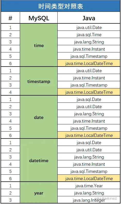 不论数据库的时间类型是什么(除了year),在Java中一律使用 java.time.LocalDateTime即可。