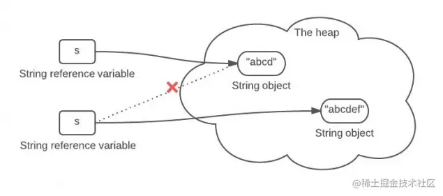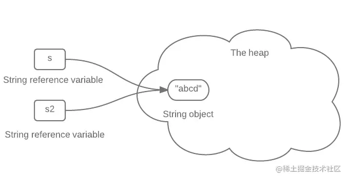 s中保存的是一个重新创建出来的String对象的引用。