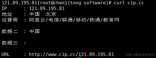 在linux系统中输入上述的命令,可以查看到本机连接的公网信息;