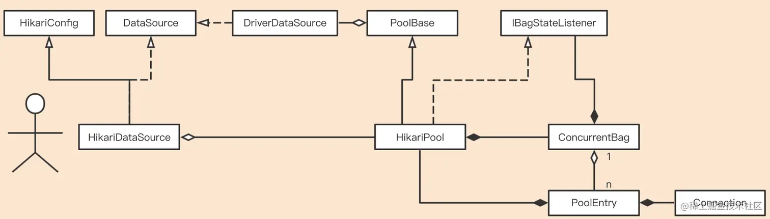 主要的连接池类,为HikariCP提供基本的池化行为。