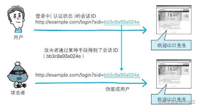 会话劫持(Session Hijack)是指攻击者通过某种手段拿到了用户的会话ID,并非法使用此会话ID伪装成用户,达到攻击的目的。