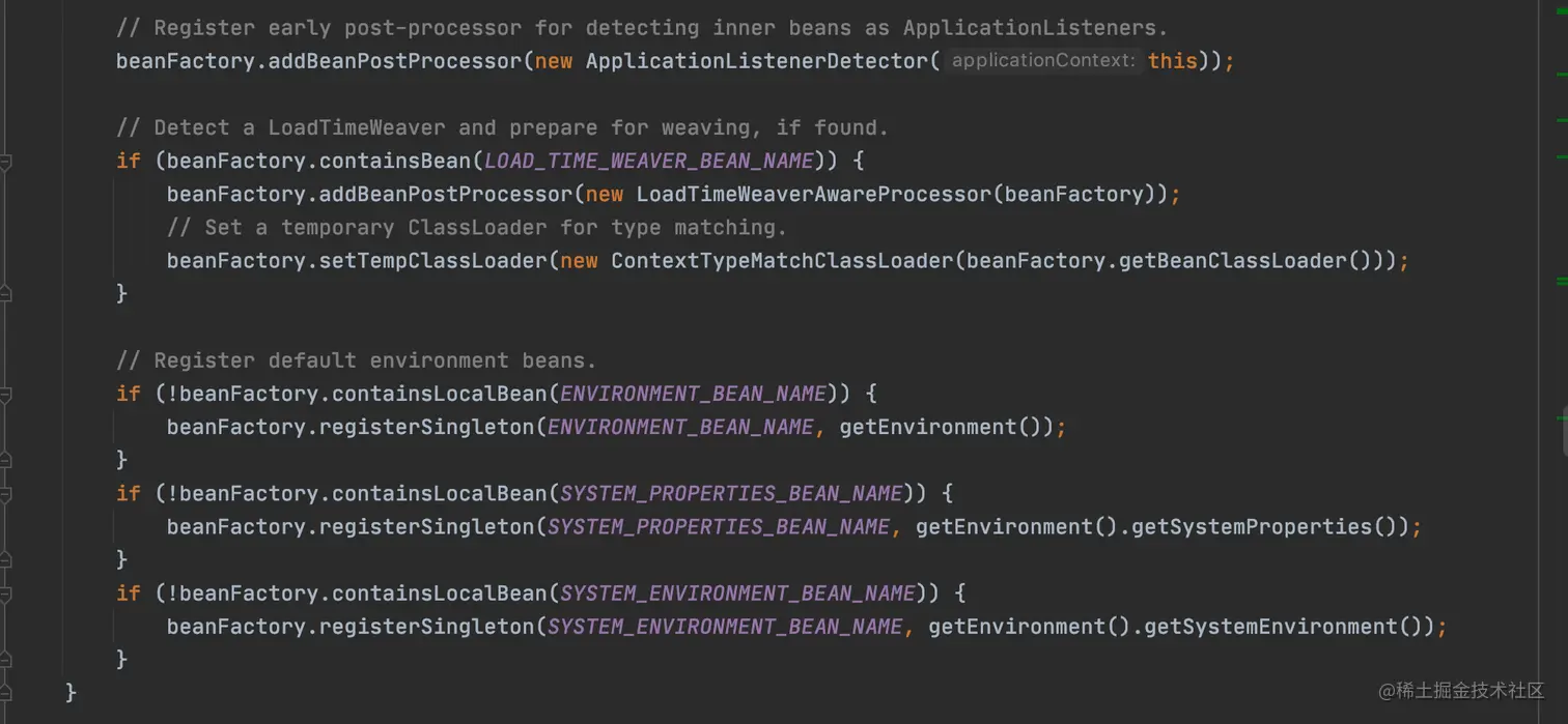 - 注册3个单例,第一个environment是,默认是创建的是StandardEnvironment,第二个是系统配置 systemProperties,