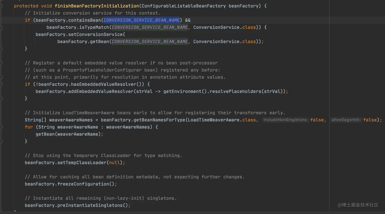10 finishBeanFactoryInitialization(结束BeanFactor的初始化)