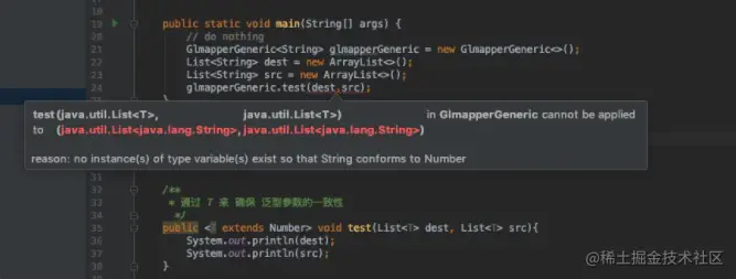 上面的代码在编译器并不会报错,但是当进入到 testNon 方法内部操作时(比如赋值),对于 dest 和 src 而言,就还是需要进行类型转换。