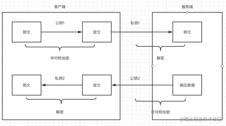 客户端、服务端之间的信息都会经过中间人,中间人可以获取和转发两者的信息。在 HTTP 下,前端数据加密还是避免不了数据泄露,因为中间人可以伪造密钥。为了避免中间人攻击,我们一般采用 HTTPS 的形式传输。